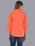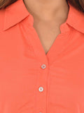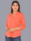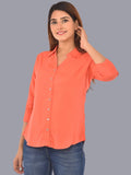 Womens Solid Peach Regular Fit Spread Collar Rayon Shirt