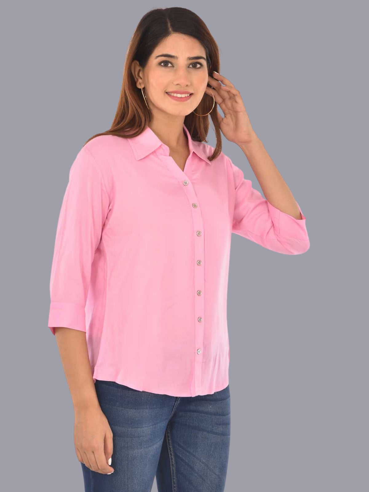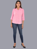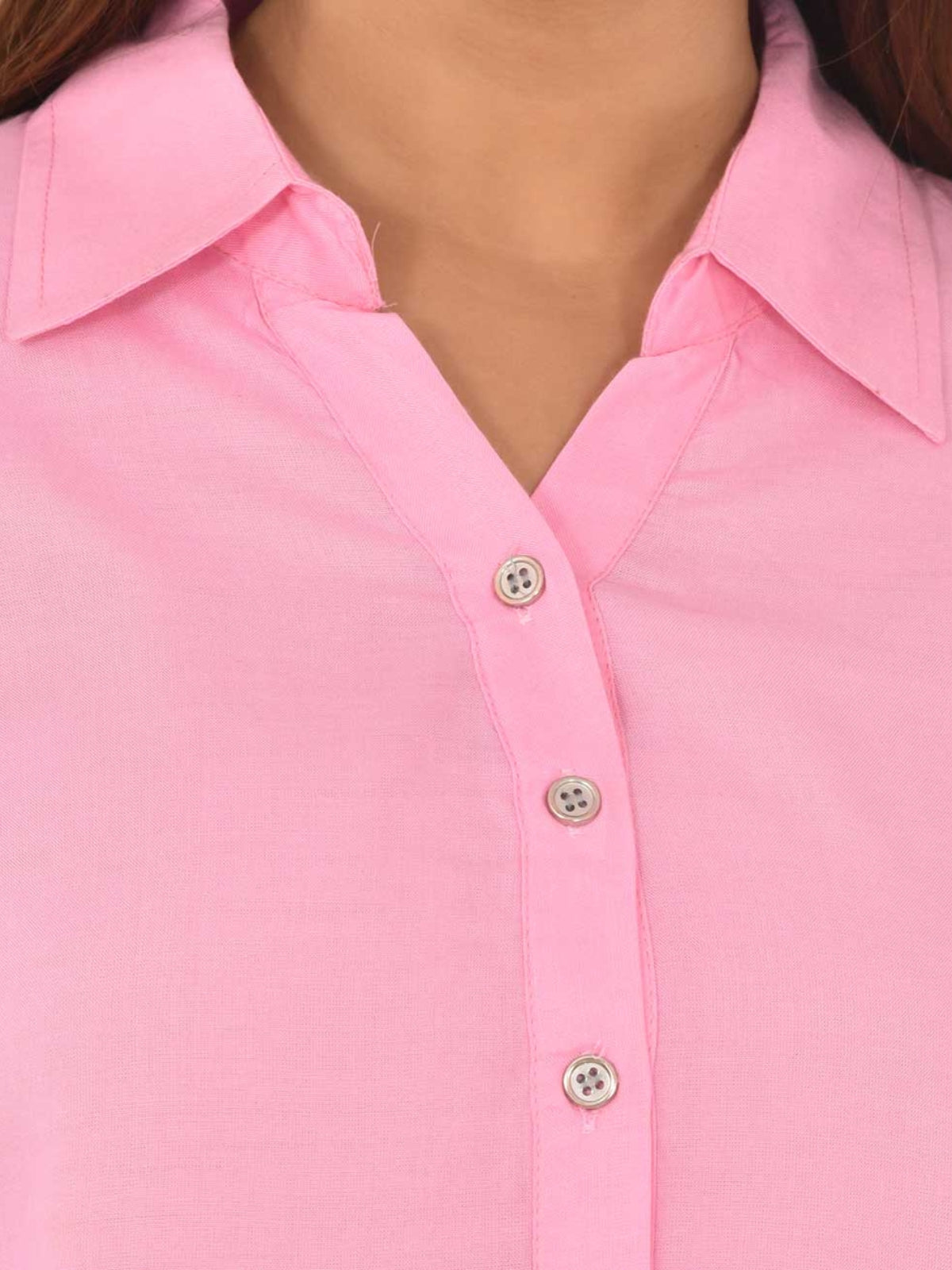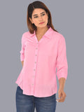 Womens Solid Pink Regular Fit Spread Collar Rayon Shirt
