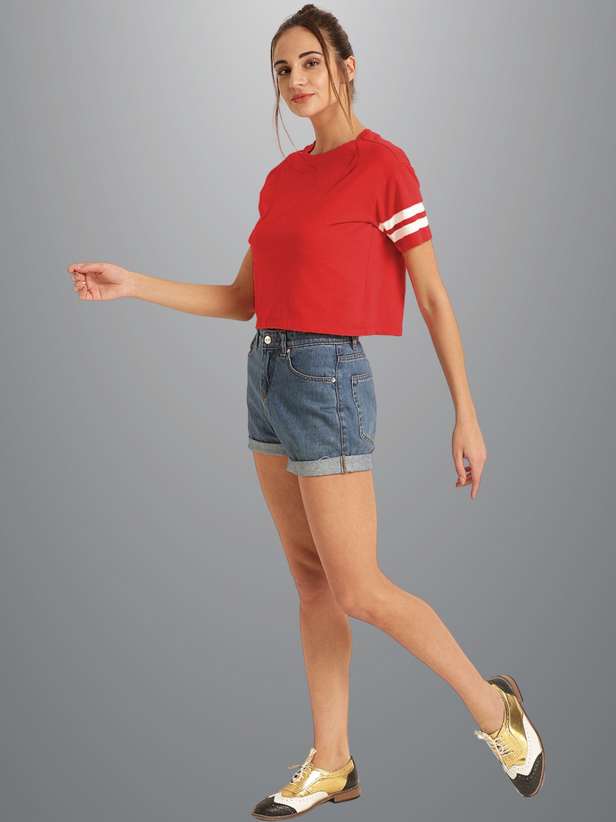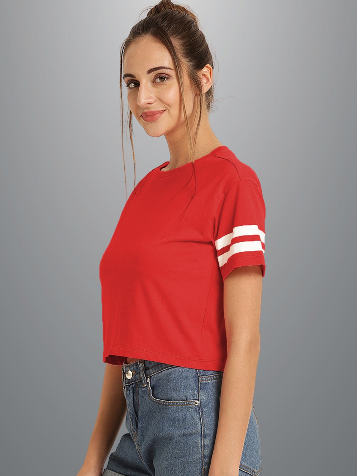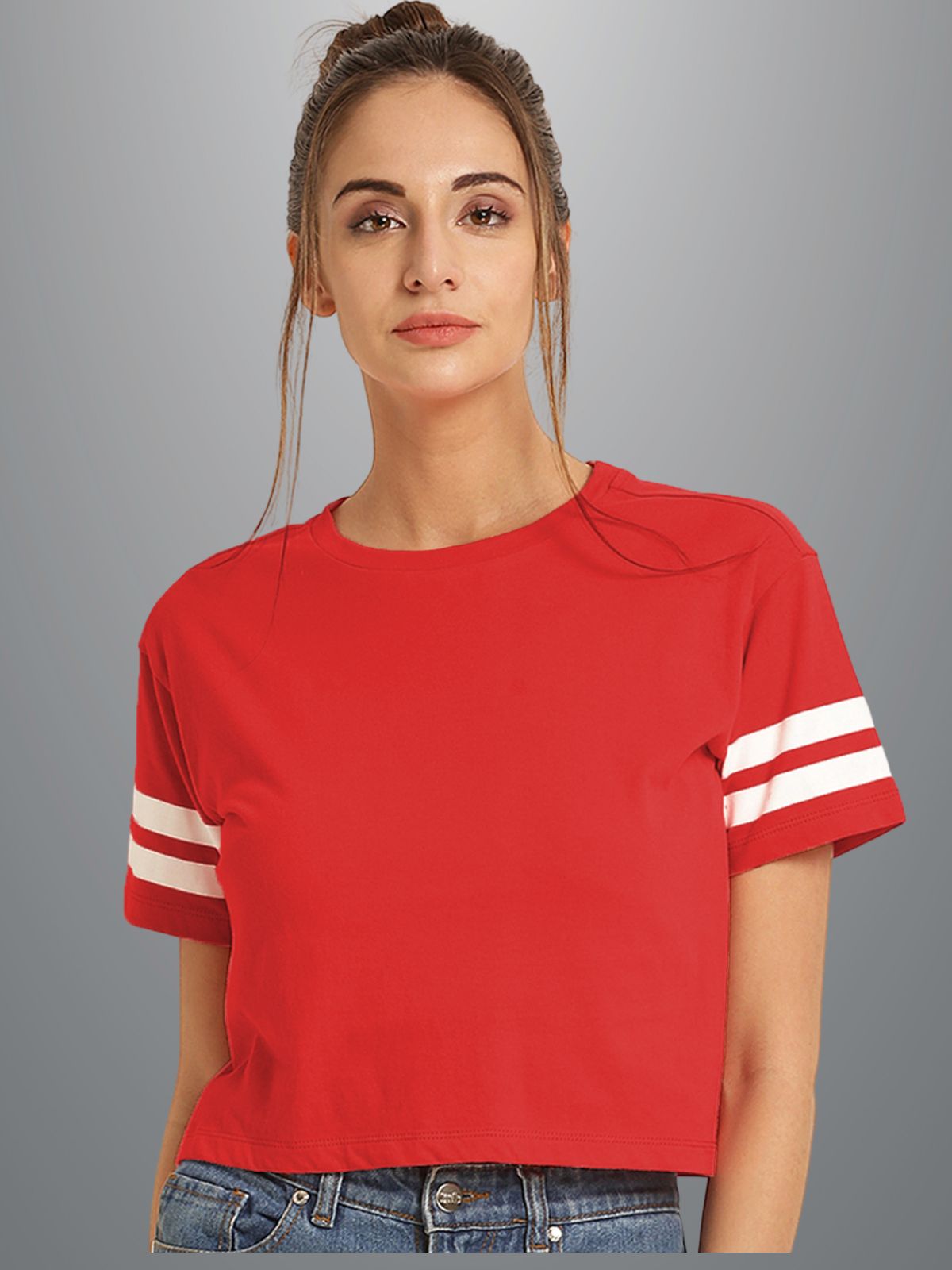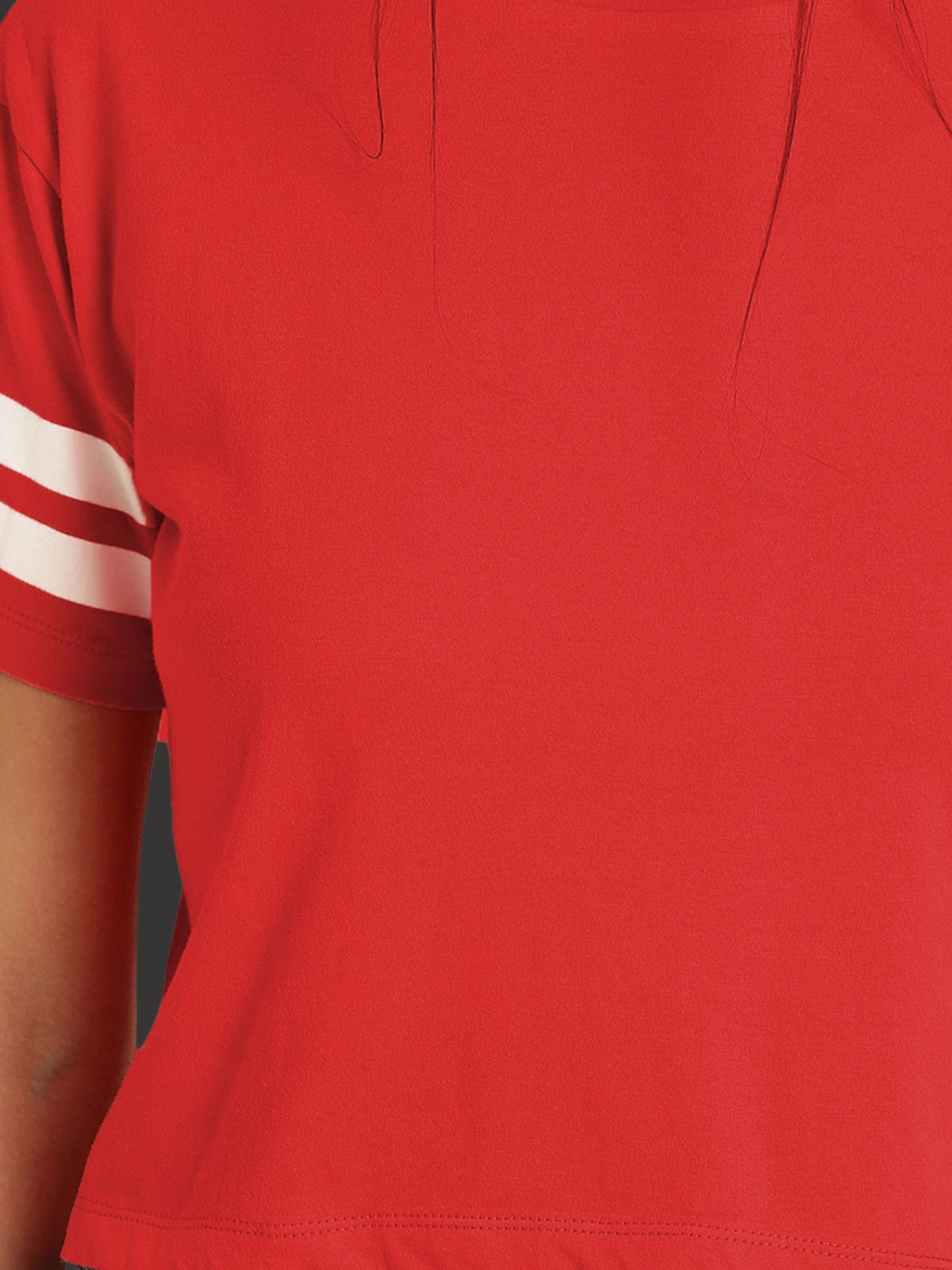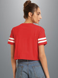 Womens Solid Red Cotton Crop Top With Designer White Stripe