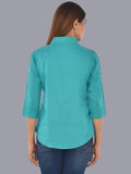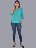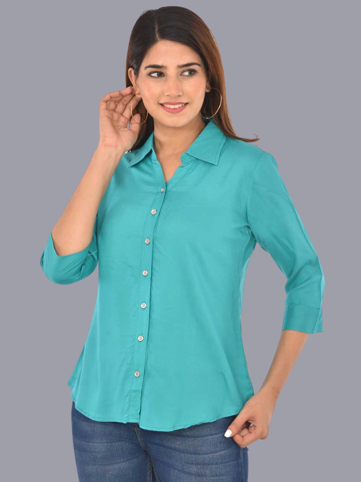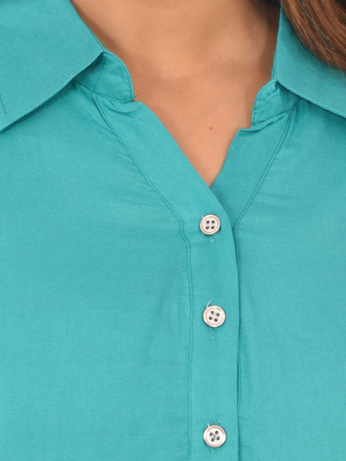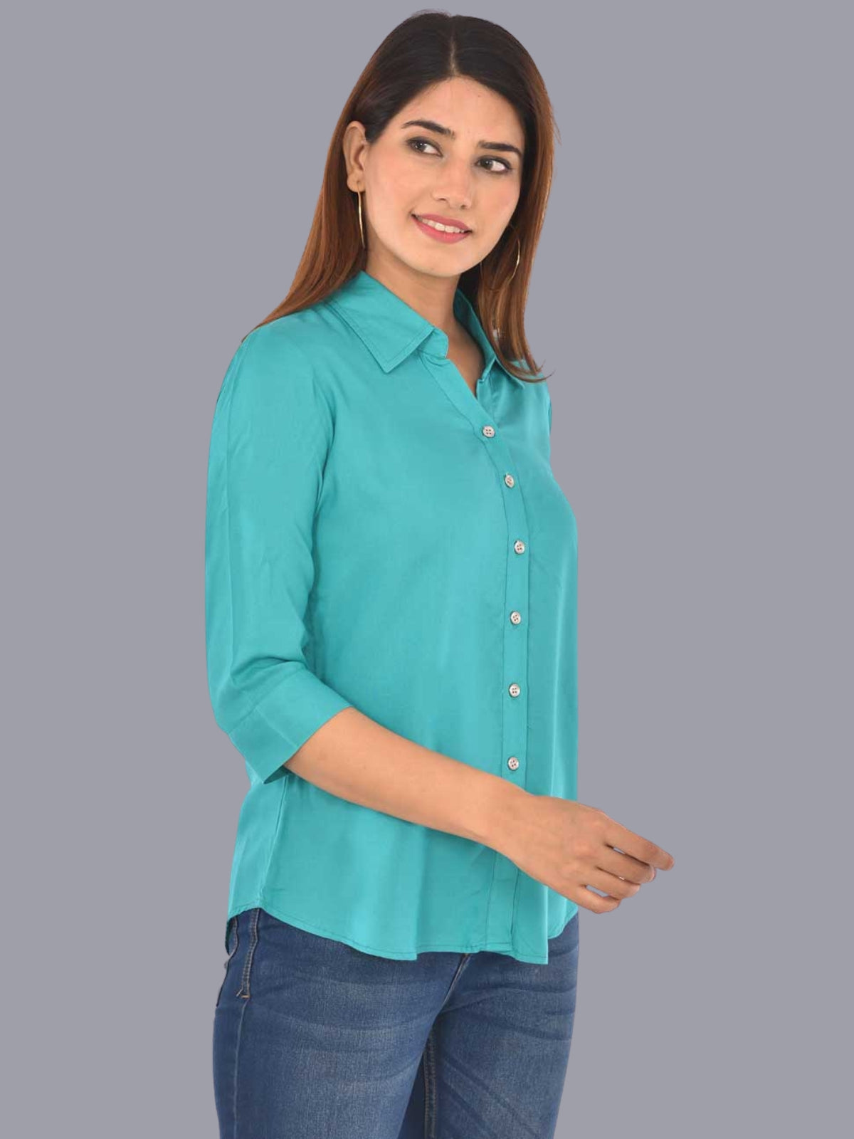 Womens Solid Sky Blue Regular Fit Spread Collar Rayon Shirt
