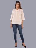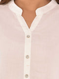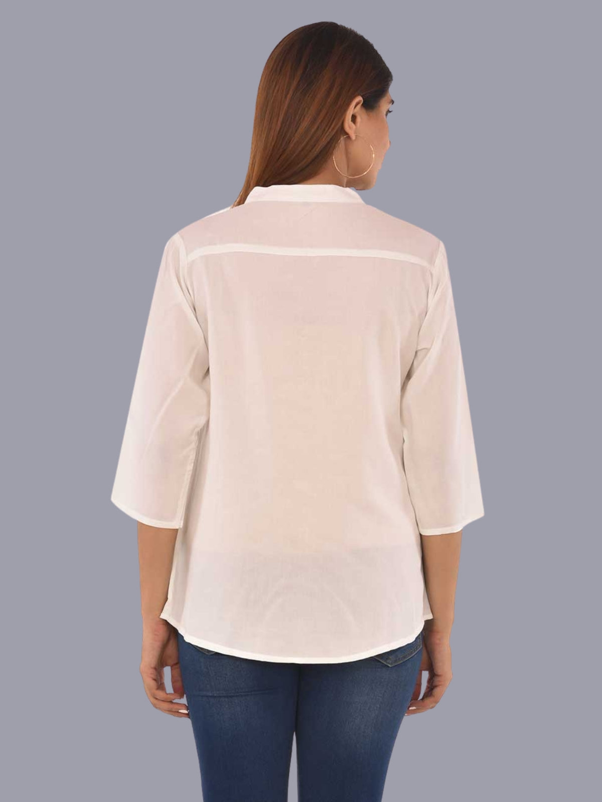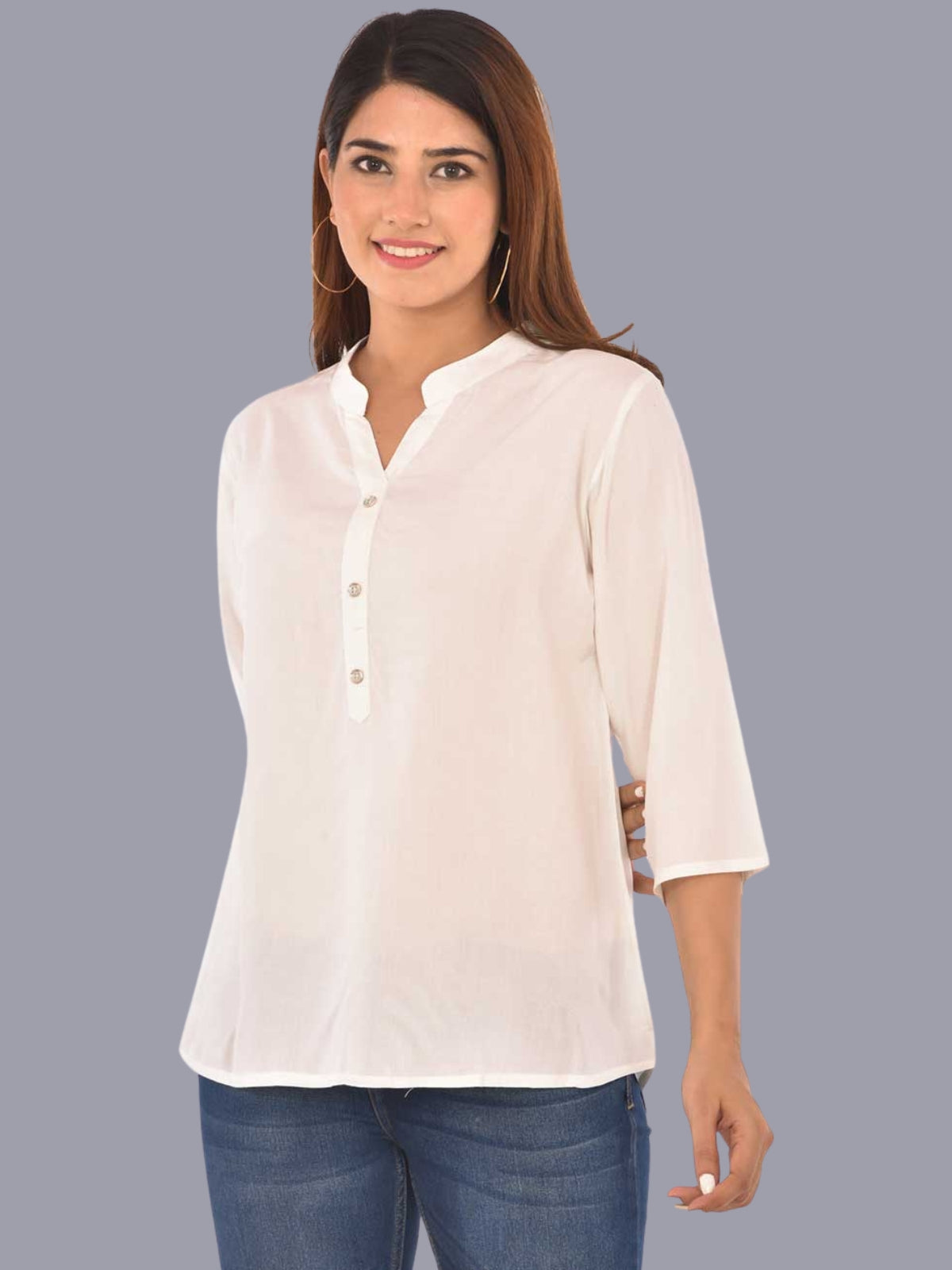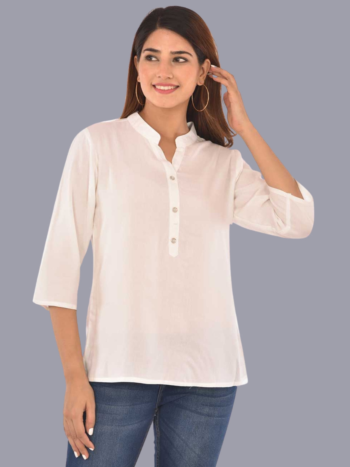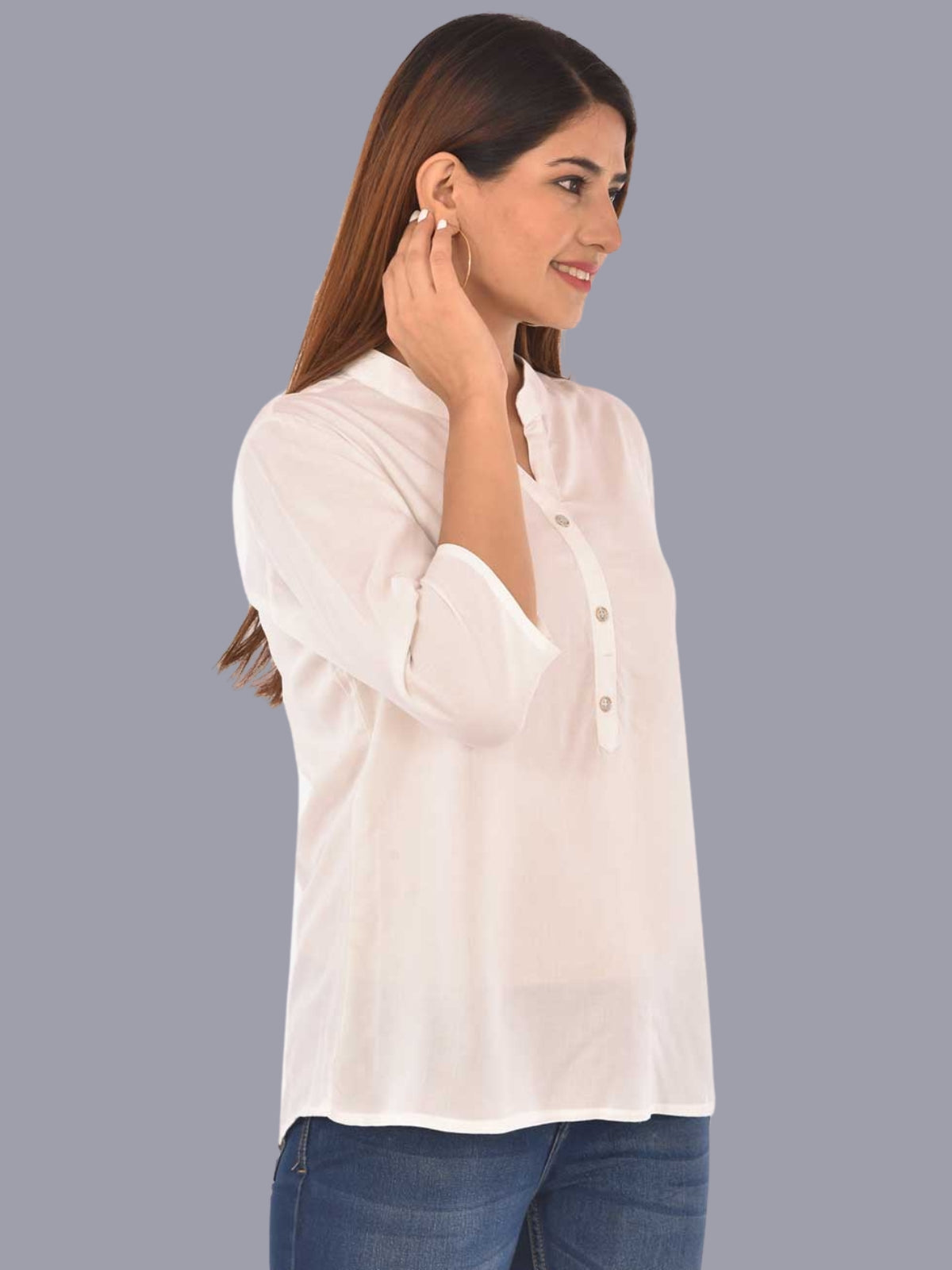 Womens Solid White Chinese Collar Three Fourth Sleeve Rayon Tops