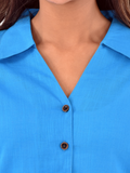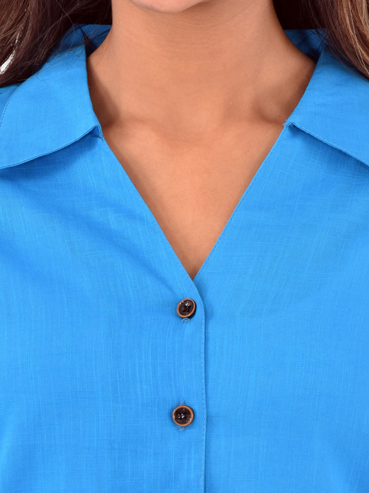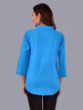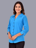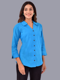 Womens Turquoise 3/4 Sleeve Regular Fit Cotton Shirt