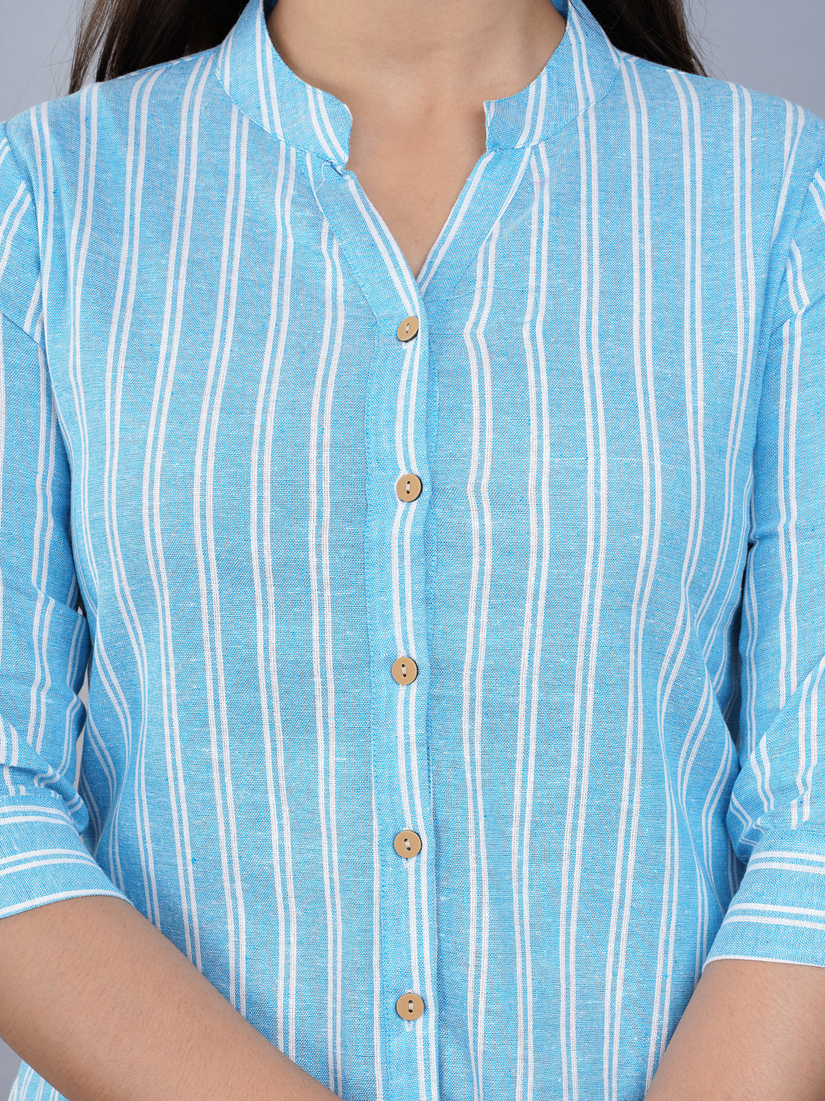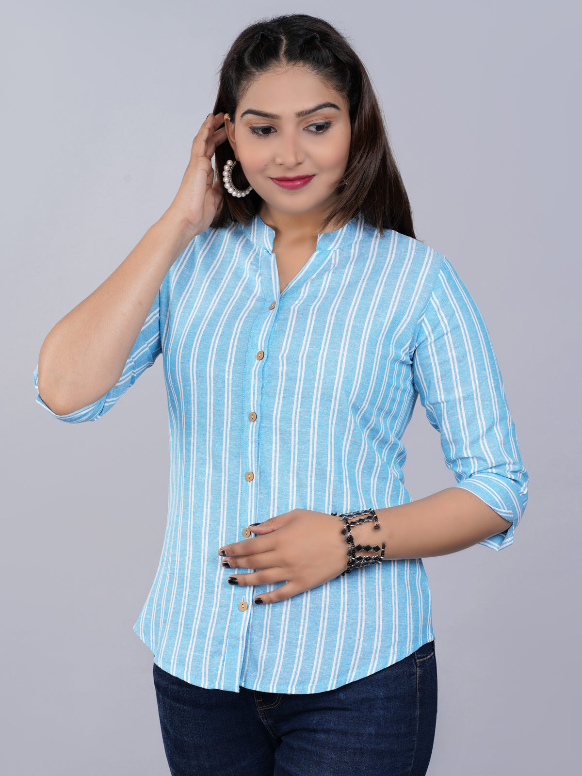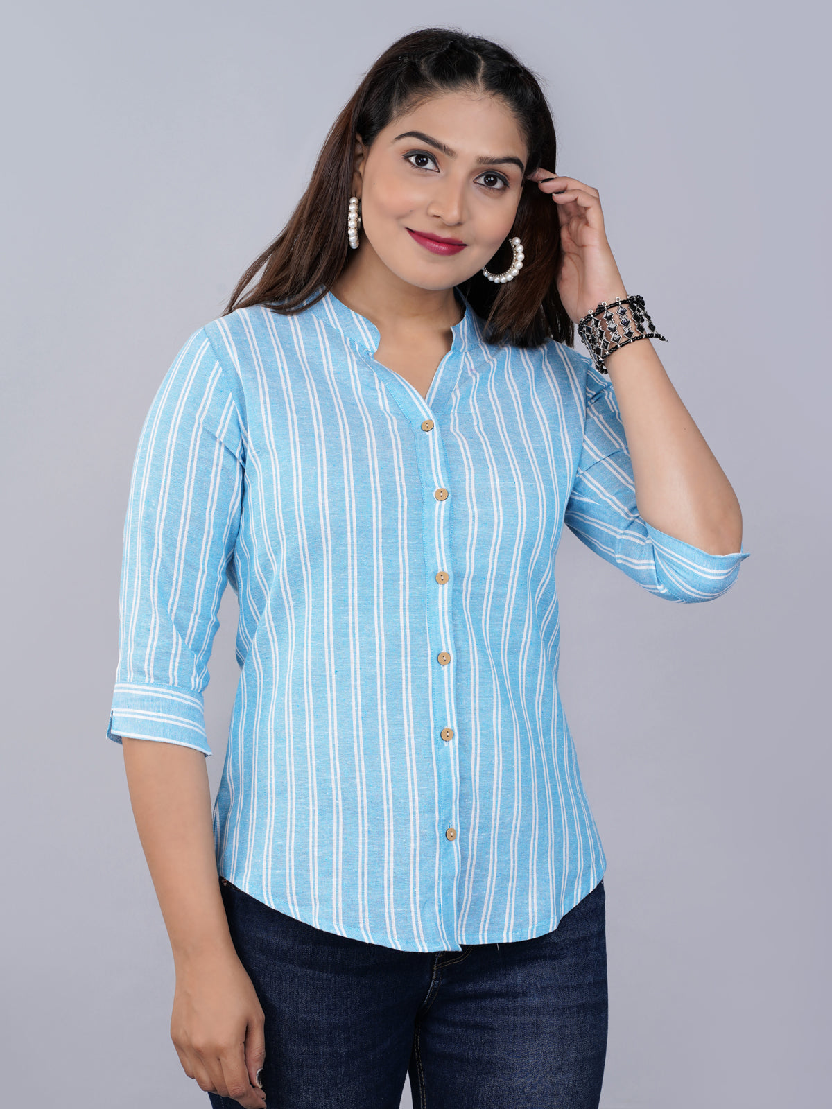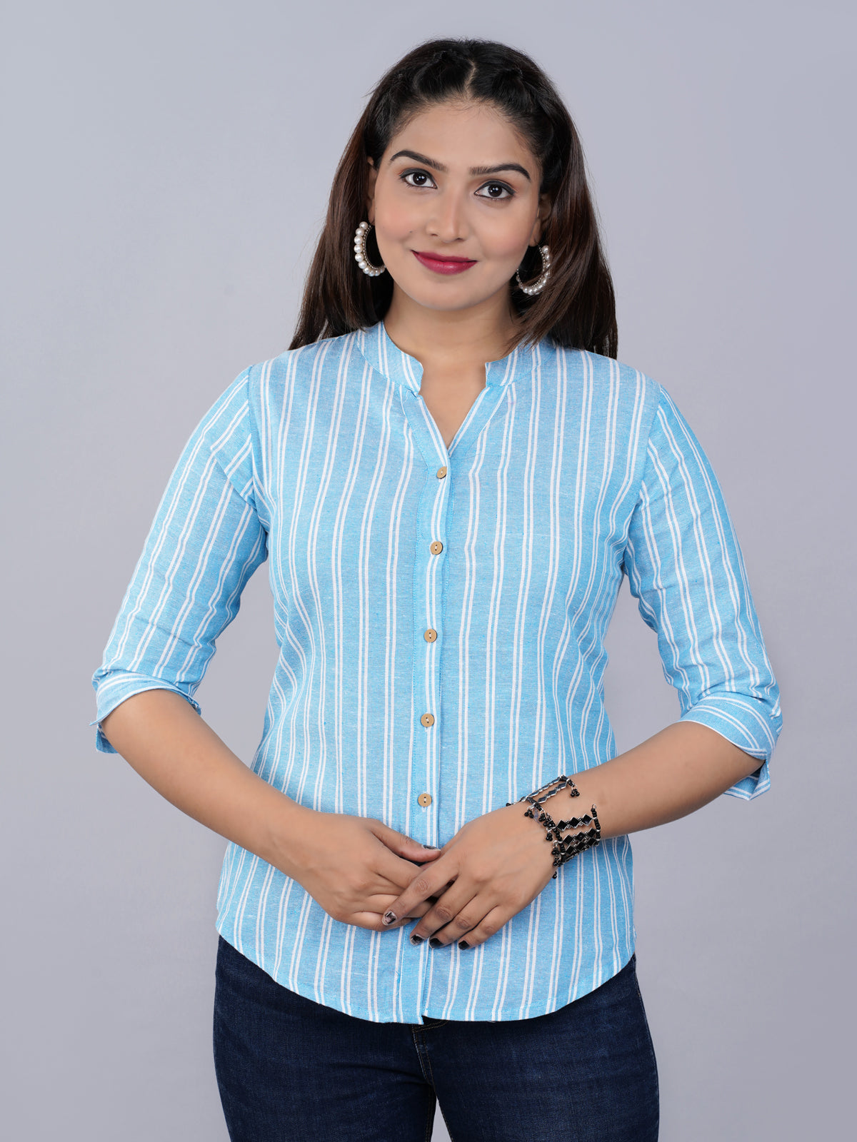 Womens Striped Casual Shirt is modern and western look by wearing this wonderful SHIRT. Chinese Collar Stripe Shirt with 3/4 sleeve has been made with the fabric which is skin friendly fabric, allows you to visit any party in the comfortable condition or for casual wear . This has been stitched with standard modern style to promote your look to the most stylish lady in the party or casual Purpose. BUY NOW!!!.HAPPY SHOPPING !