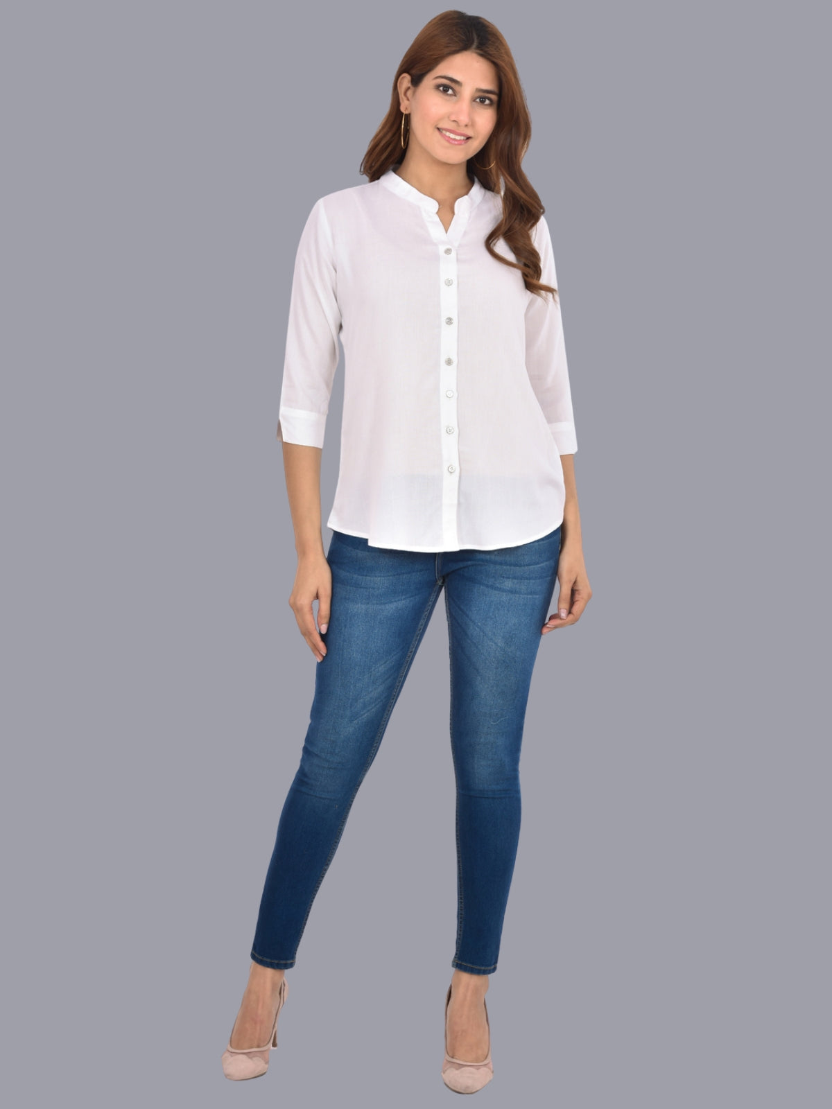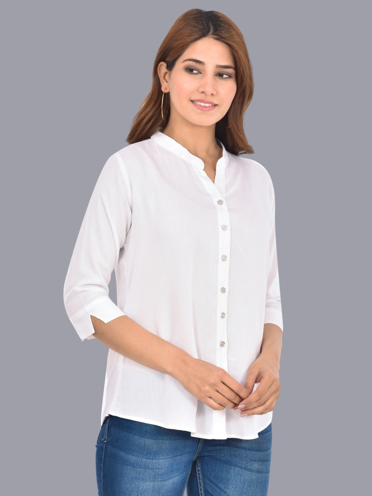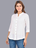 Womens White Regular Fit Chinese Collar Rayon Shirt