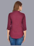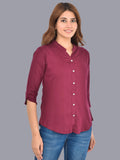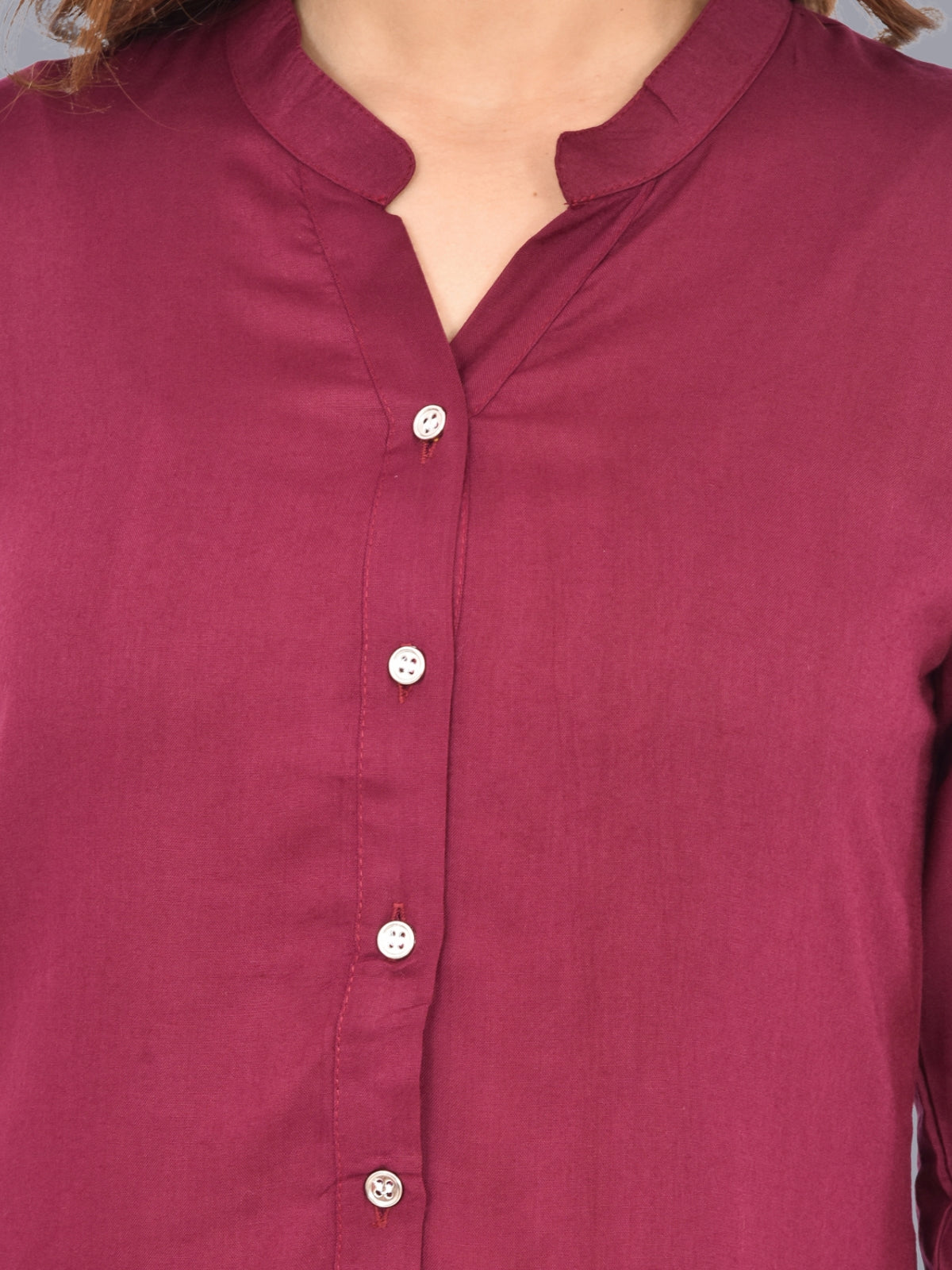 Womens Wine Regular Fit Chinese Collar Rayon Shirt