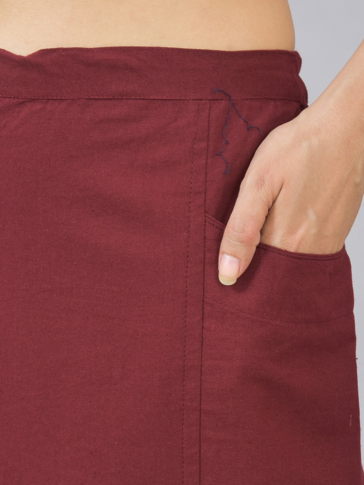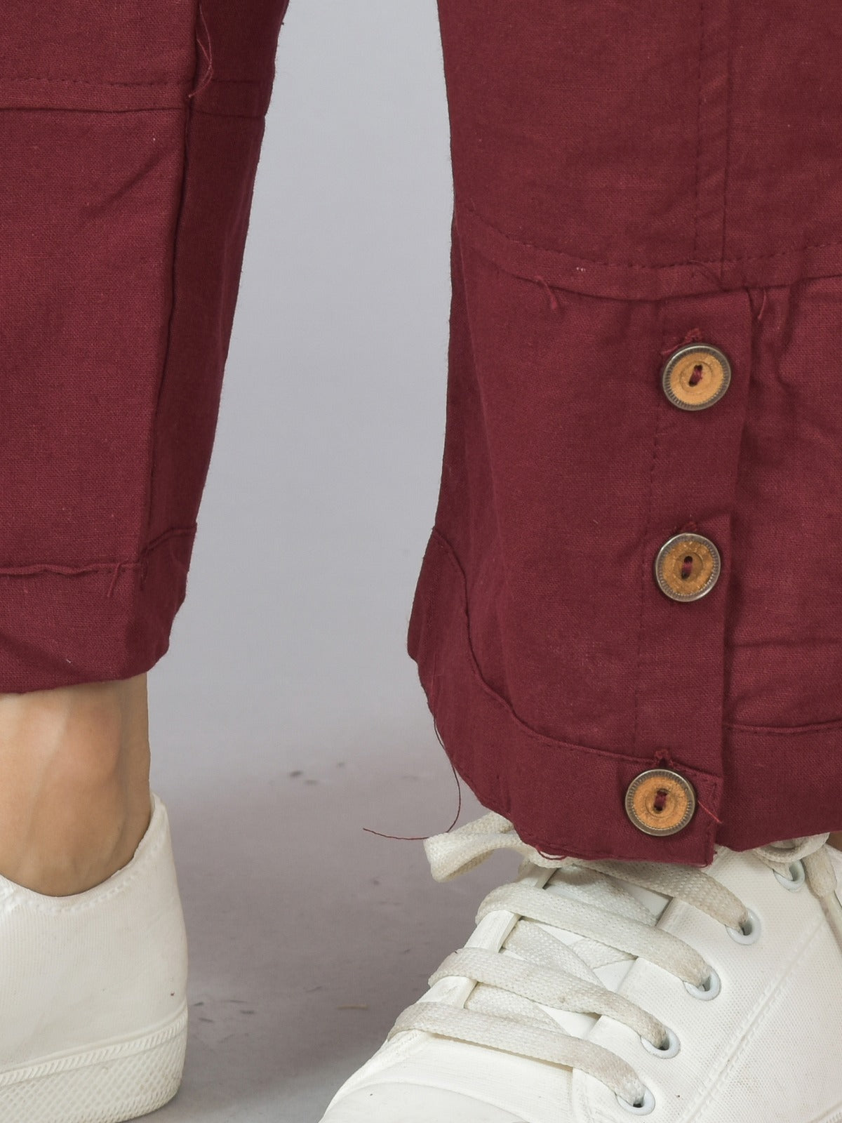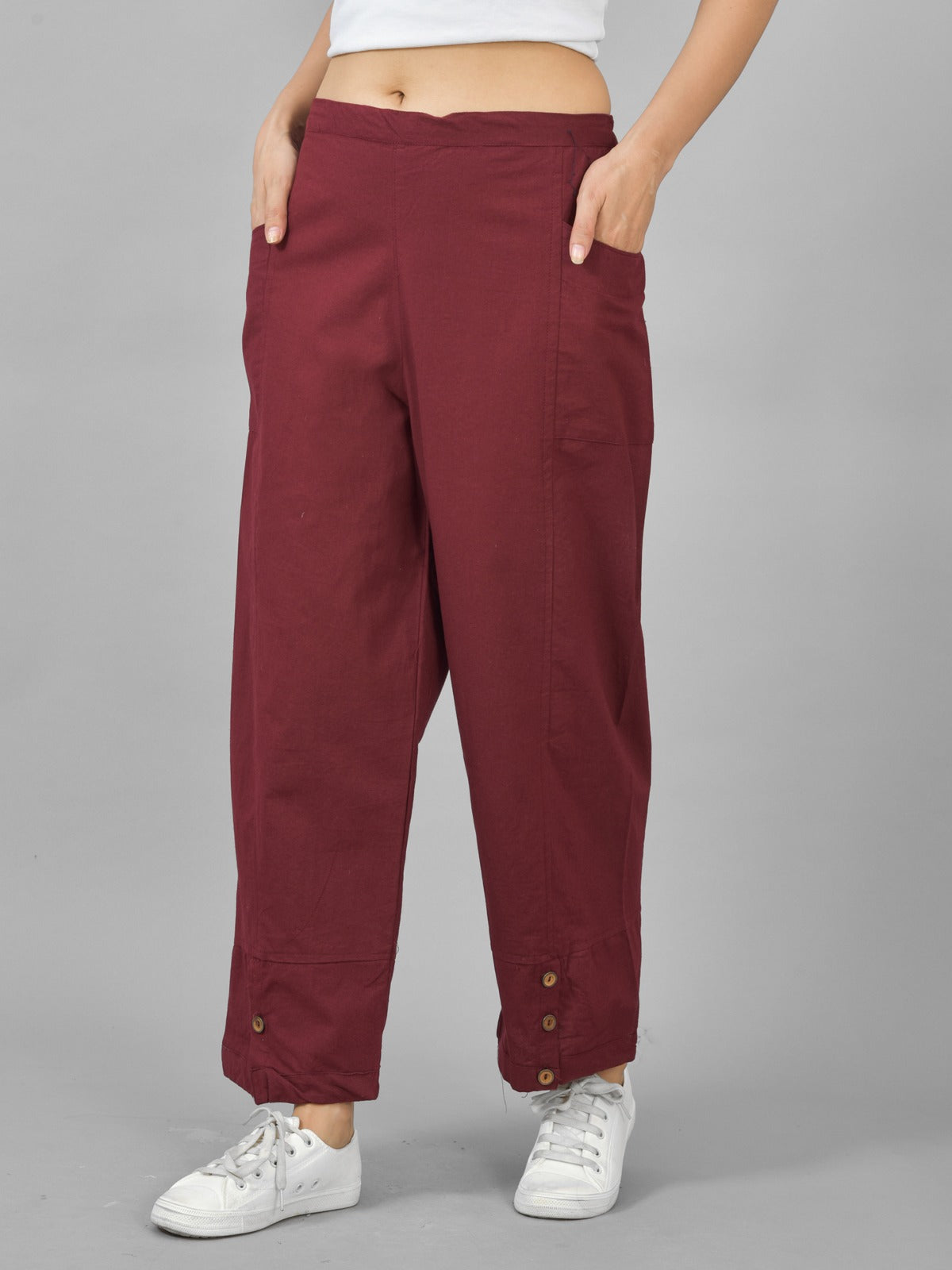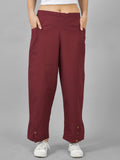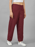 Womens Wine Side Pocket Pure Cotton Straight Cargo Pant