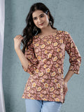 Womens Yellow Sanganeri Printed Cotton Short Kurti
